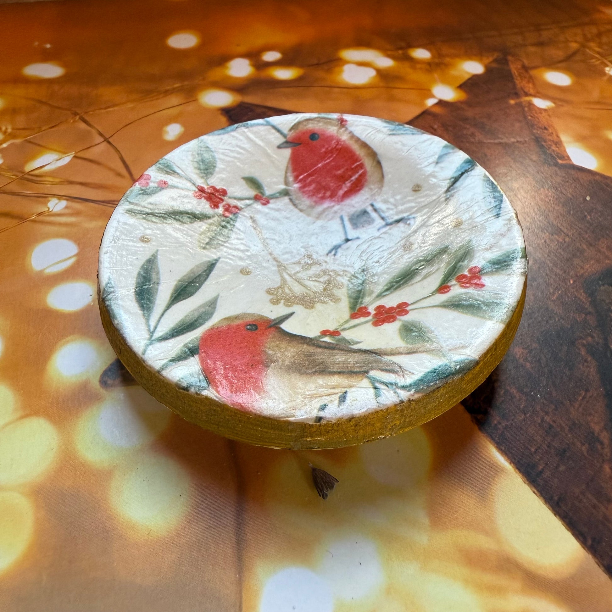 Handmade and Decorated Christmas Robin Trinket Dish, Ceramic Jewellery Tray