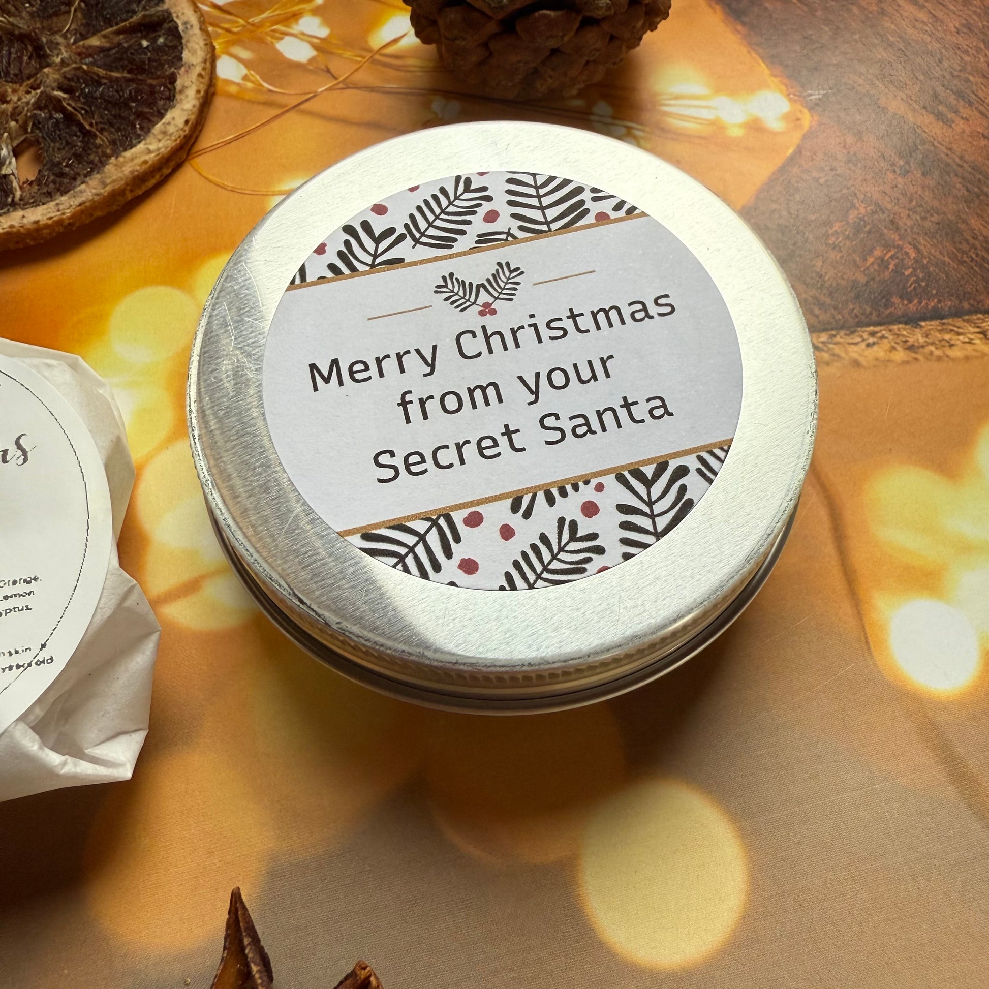 This is one handmade aromatherapy shower steamer in a cute aluminium tin with the message Merry Christmas from your Secret Santa. You can add a super cute bamboo tray too if you'd like!
